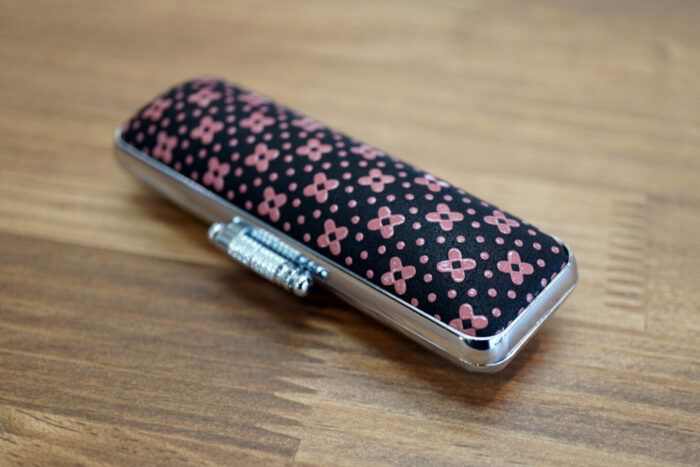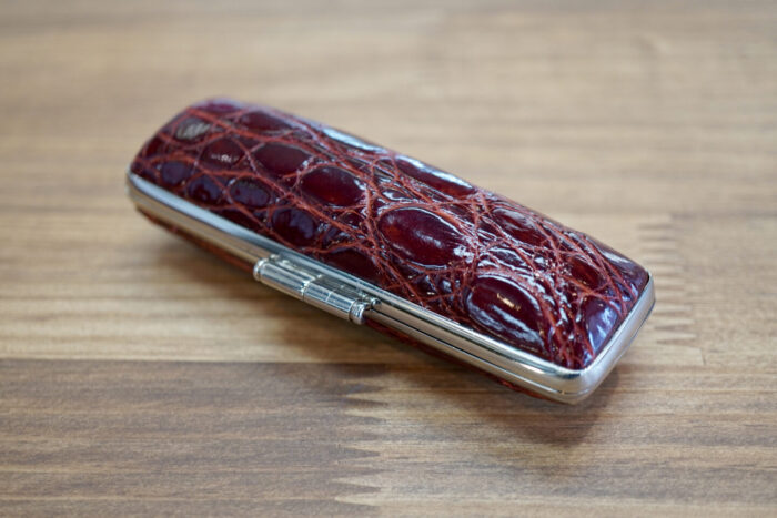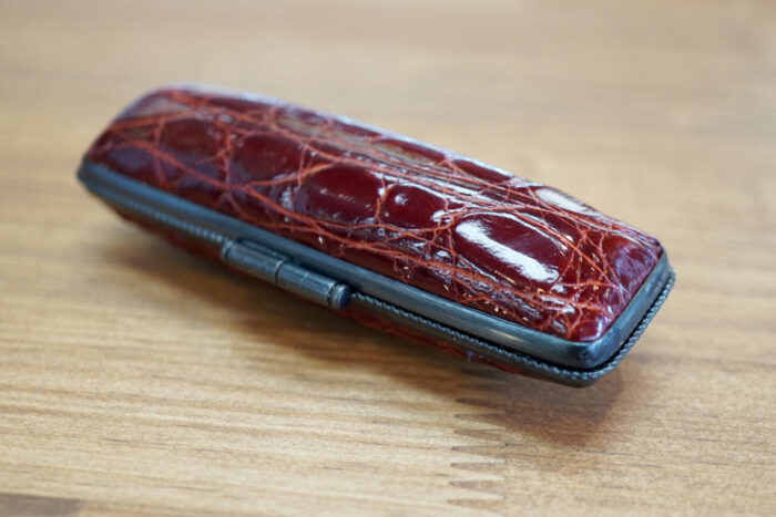 上記のKFワニ革ニッケル燻枠ケースとの違いは、「福輪(ふくりん)」と呼ばれる、縄状の装飾が施されている点です。