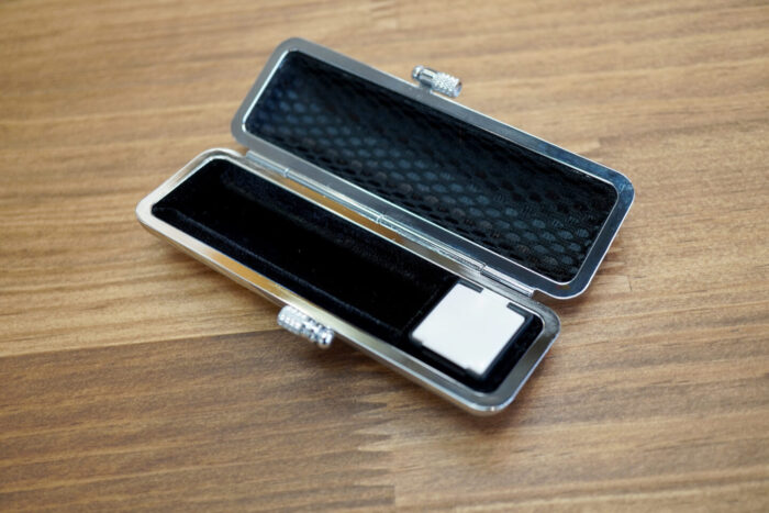 職人による完全ハンドメイドで、印材に合わせて1つ1つ丁寧に作られ、開閉時に重厚感ある心地と極上の音色を奏でます。