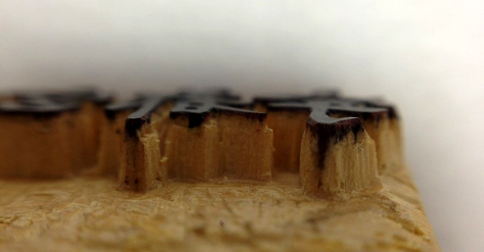 そして手書きした文字を通常の印章と同じように、逆さまに転写して彫っていきます。