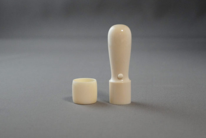 そこに今後作り出すのことのできない「牙蓋(朱肉を入れる部分の蓋が象牙になっている、こちらも鈴印でしかご用意できません)」(げぶた)を標準装備しています。