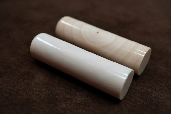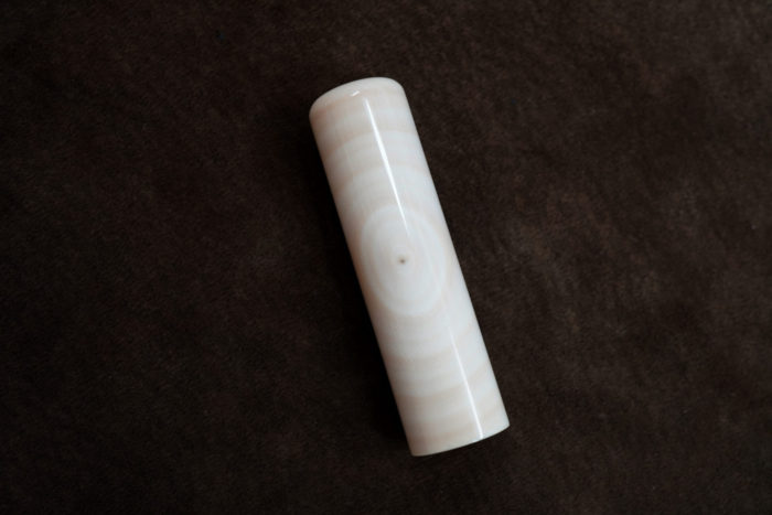通常の印材(縦目)は牙に沿って取り出されるため、繊維が縦に走っていて彫りやすいのです。