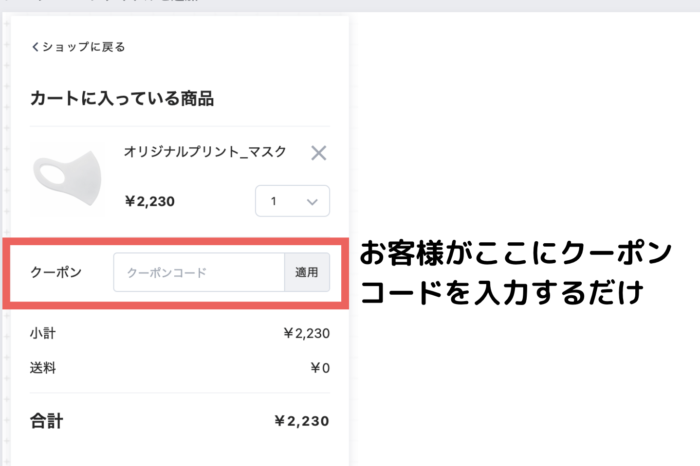 使い方は簡単で、お買い物の際にクーポンコード