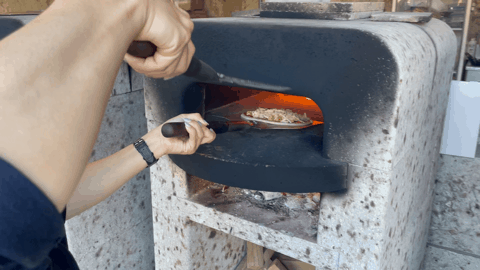 大谷石の窯でピザ焼き体験。