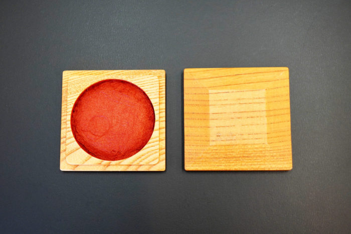 朱肉と一緒に置くサイズ、印章だけを置くサイズの2つをご用意しました。