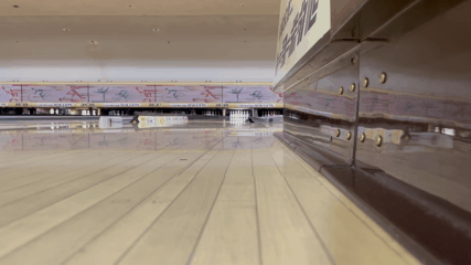 - 親指を抜いて持って投げる→いい角度で回転するが、曲がりすぎてガーター、一直線