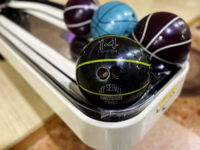なので結局、こちらのボウリング場で一番重い14ポンドを使うことにしました。