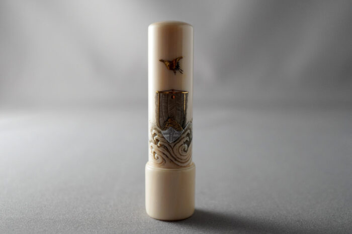 【デッドストック】象牙【東峯】75㎜丈×18㎜丸象嵌宝船実印の特徴