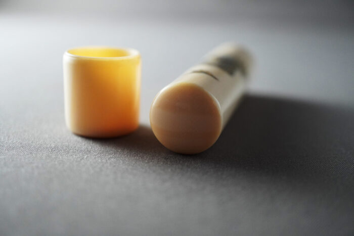 また、鞘と呼ばれるキャップは印面を保護するだけでなく、堂々とした佇まいを演出します。