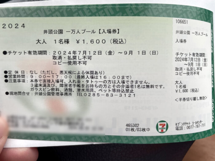 それら合体し、今ではプール入り口もしくはセブンチケットという2つの購入方法に移り変わりました。