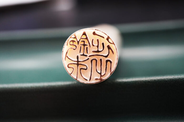 ご覧のように印章は最後に文字を削る「仕上げ」行程を経て完成するのですが、白いままでは細かい部分が見えにくくなります。