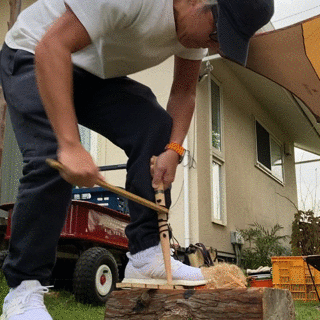 点火の方法はいくつかあるんですが、まずは摩擦法と呼ばれる「弓切り式」に挑戦。