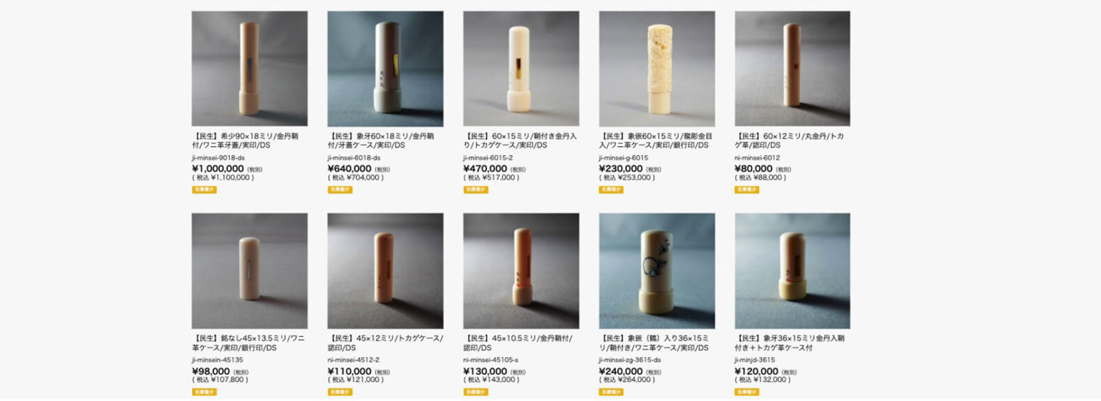 鈴印では様々な印鑑にまつわる商品をご用意していますが、その中でも特に独自性が強いのが、デッドストックです。