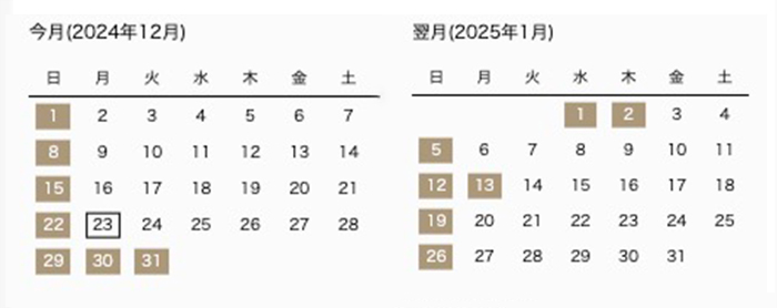 カレンダーの濃い色がお休みになります。